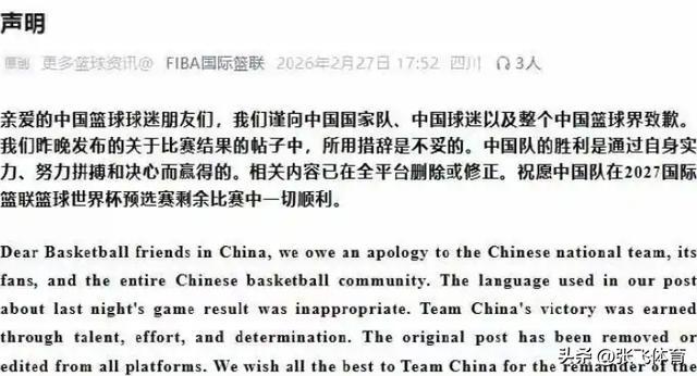 那么,国际篮联究竟是如何道歉的?
