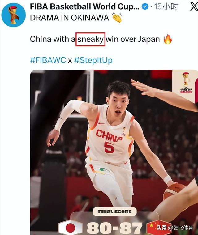 比赛结束后不久,国际篮联也就是FIBA,在他们的官方社交账号上发了一条消息。