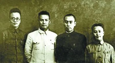 中共中央长江局主要成员在武汉合影。右起:王明、周恩来、叶剑英、博古